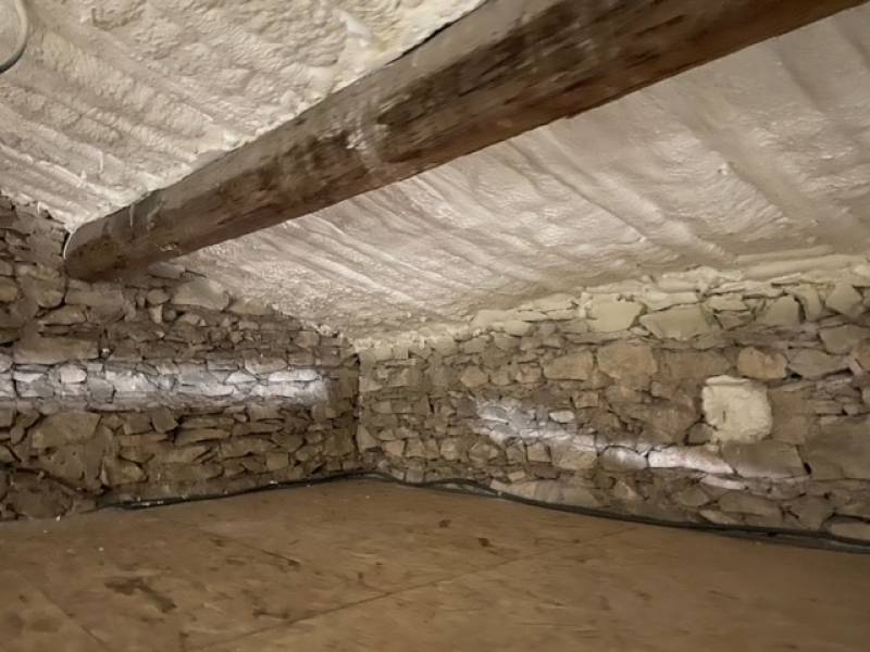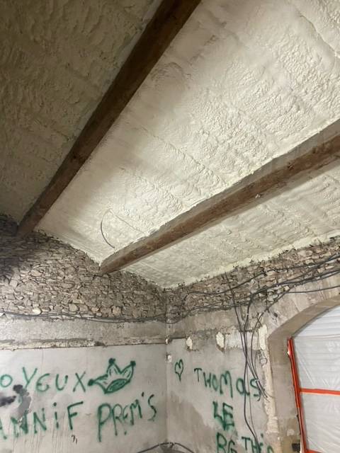 De plus la qualité de la projection permettra de fixer un faux plafond directement sur les poutres apparentes et rendre totalement invisible la toiture ainsi isolée.