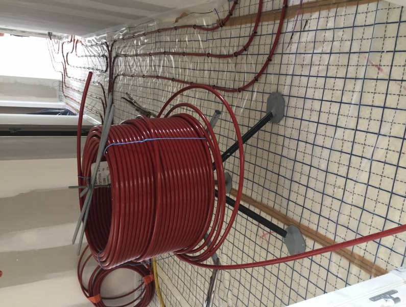 En effet après projection de la mousse de polyuréthane, son rabotage et la pose du film ployante, nous avons vérifiés la bonne mise en place de nos ouvrages une fois les tubes du plancher chauffant déroulés sur notre isolation. La photo parle d'elle même et ne souffre d'aucunes équivoques. Il n'y a aucun "jour" entre la règle et les tubes, c'est peut être surprenant mais c'est la réalité.