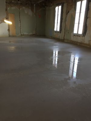 Les 450 m2 de chape chape ont été coulés en une journée et 7 jours plus tard, le plaquiste pouvait poser ses cloisons sur notre ouvrage en toute sécurité et sur un support totalement plan.