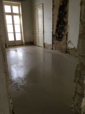 L'architecte avait sollicité de nombreuses entreprises avec diverses solutions à la clé, du type "béton styrène" - "chape armée" - "chape sèche"- "réfection plancher"...Aucunes de ces solutions n'a convenues car trop lourde pour l'une, trop coûteuse pour l'autre, ou tout simplement inadaptée.