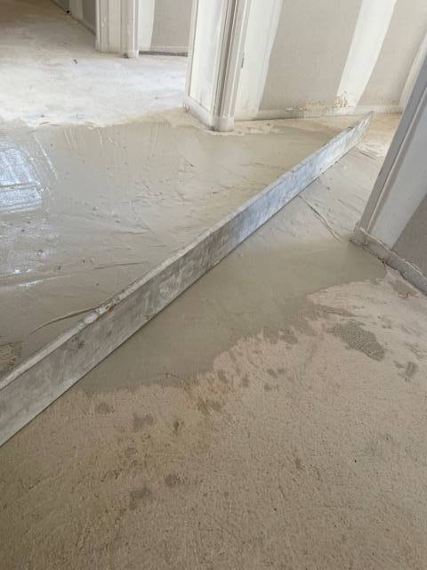 Après que la chape ait fait sa prise et quelques jours de séchage, nous sommes intervenu pour rectifier le raccord qui contrarié le poseur de carrelage.