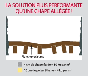 Pour une remise à niveau d'un plancher ancien peu ou très deformé, la solution de mousse polyuréthane projetée est la solution idéale.
